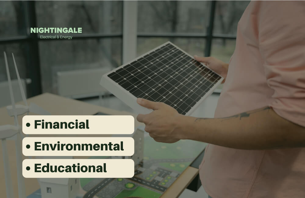 Educational - Solar panels provide a relevant and interesting opportunity for educating students about the importance of renewable energy.