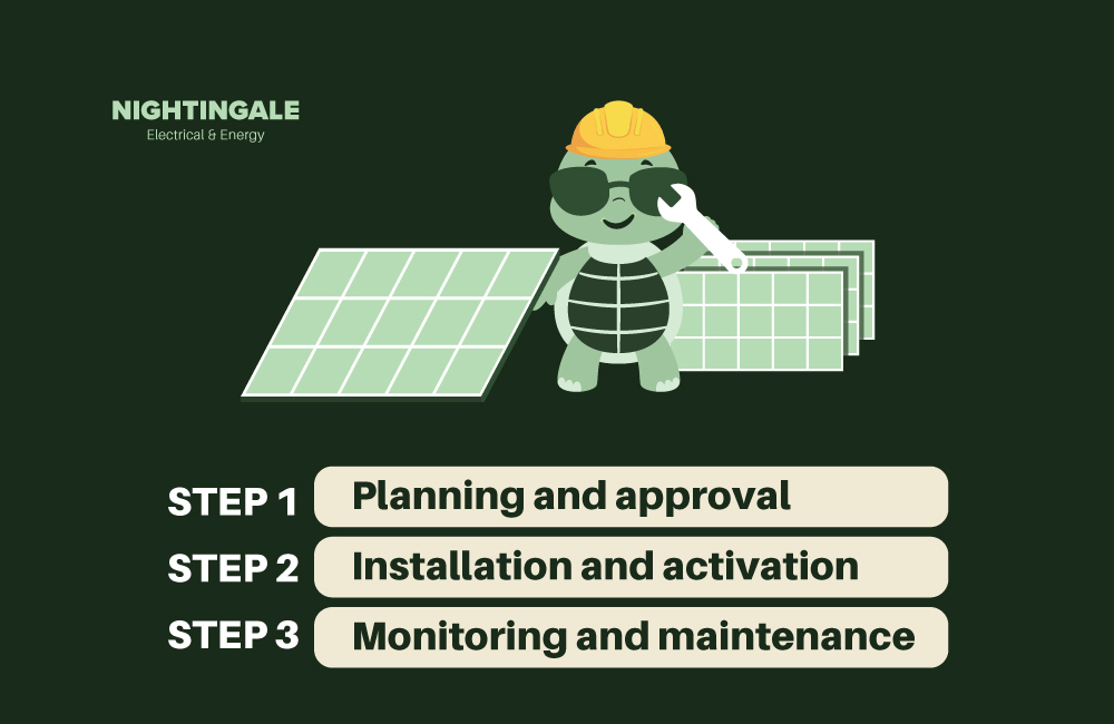 When installing solar panels in educational settings like schools, we follow a clear 3-step process: