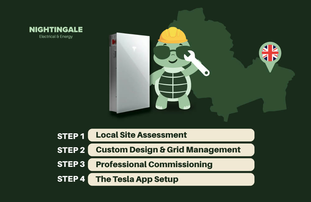 Professional Commissioning: Our Tesla-certified technicians handle the wiring and mounting. We ensure the unit is safely integrated into your home's consumer unit and solar PV system.